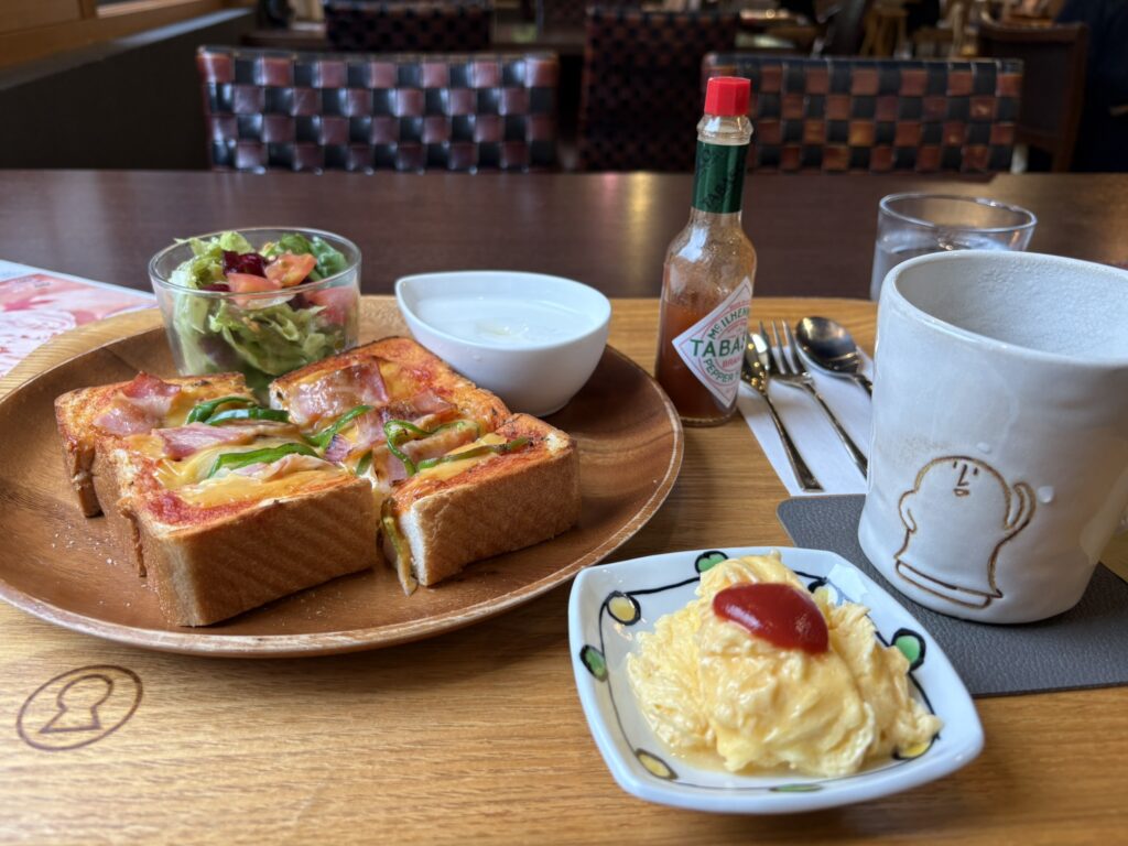 お向かいの公園内におしゃれなカフェがあったので、ピザトーストをいただきました!