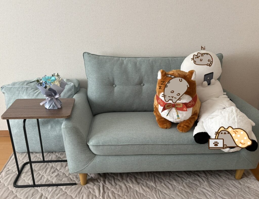 いつもはベッドに寝転ぶかPC周りにいるのでソファはあんまり使わないのですが、この時ばかりはソファに座ってコーヒー飲みながらお花を見てニヤニヤしていました。