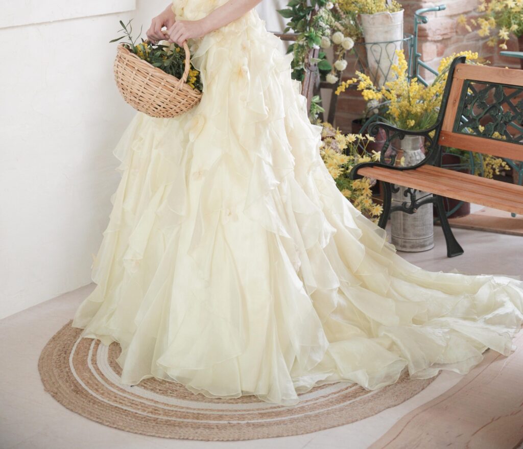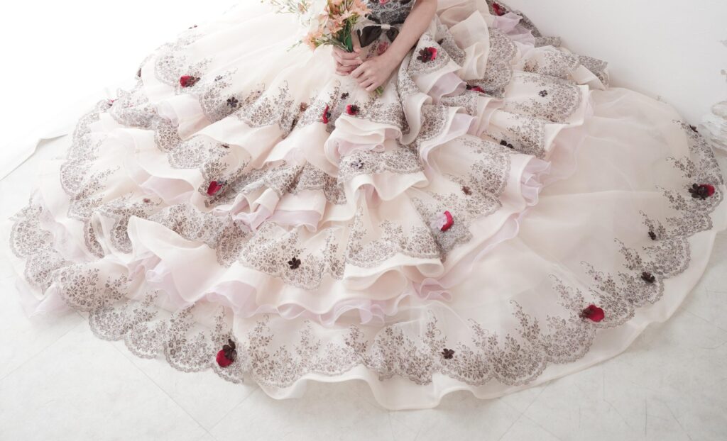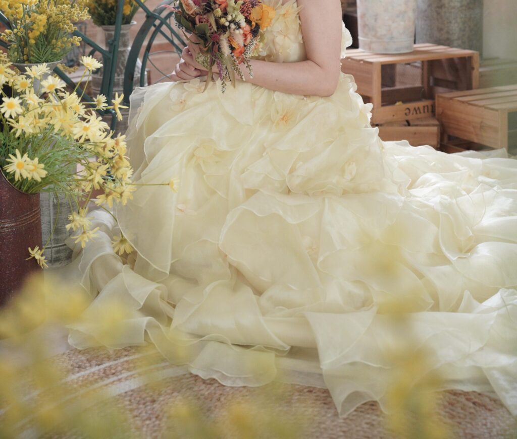 他にもドレスのボリュームを利用して、あおむけに倒れることでドレスの裾の上に寝転ぶようになり、「ふわふわのドレスに包まれている私」(笑)を表現する等、色んなショットを撮影していただきました。